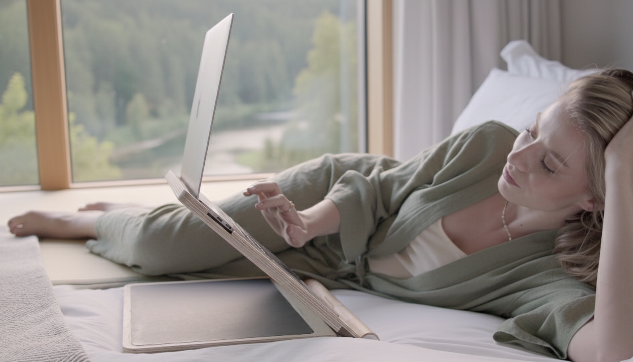 The best I've tried for my laptop. It lifts the laptop to eye-level and it's incredibly light considering it's made of sustainable wood.